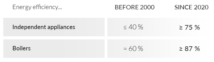 Between wood-burning appliances built before 2000 and the most recent ones, energy efficiency has jumped: